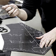 一套凱利易紳正裝,且體師要進行20—30個數據的測量,在做的過程中,還要隨時找到身上的細微變化,以確保數據準確無誤,并留下相關的影像資料備用.然后工藝師核對相關數據,用紙板打出紙樣,進行面料的裁剪。